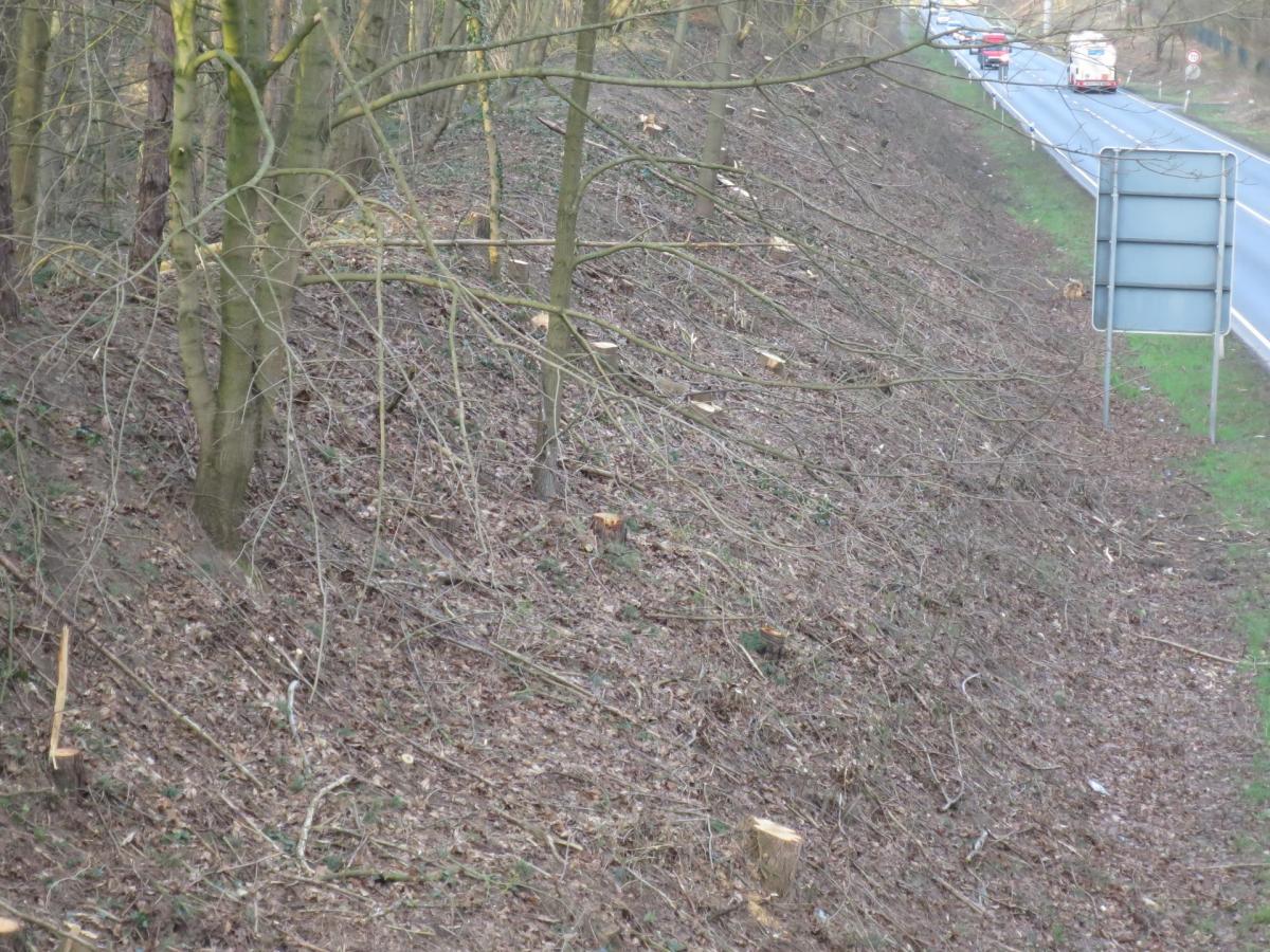 Dabei wurden zum größten Teil gesunde Bäume, Jungbäume als auch Sträucher komplett abgeholzt. Ich vermute aus Angst vor Sturmschäden, da die Bäume sehr gesund aussahen, und komplett wahllos alles niedergemacht wurde, für mich absolut ein großer Schaden für Lebensqualität, Lärm- und Schallschutz und eine Verschlechterung der Luftqualität.