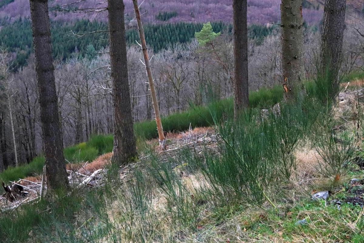 Kahlschläge Hang abwärts am Wanderweg L4 von Kurve aus Nord --> Ost bis in Kurve Ost --> West/Süd auf einer Fläche von ca. 2,4 Hektar. Oberhalb "Butzebach".