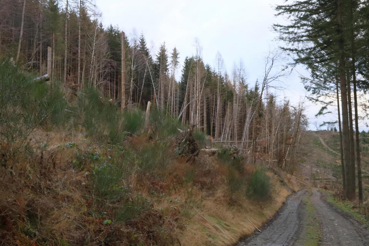 Hang aufwärts - am Wanderweg L4 gelegen - erfolgte Kahlschlag auf ca. 0,9 Hektar.