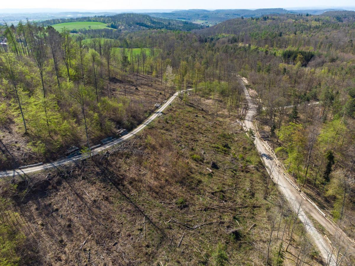 Hier wurde innerhalb von 2-3 Jahren eine Fläche von ca. 2 ha kahl geschlagen und umliegende Flächen stark ausgedünnt.