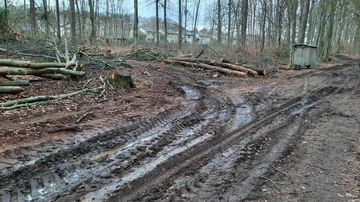 In den gerade während Corona so dringend benötigten Naherholungsgebieten wird massiv Holz eingeschlagen und die Wege zerstört.