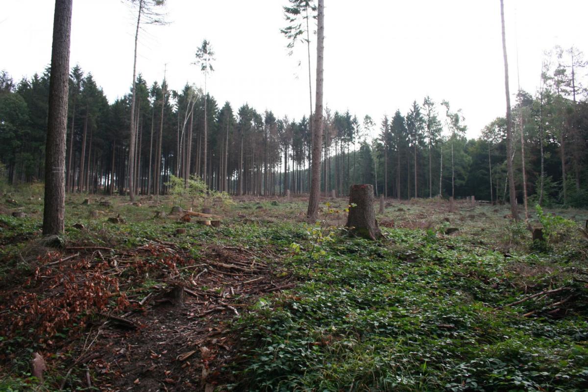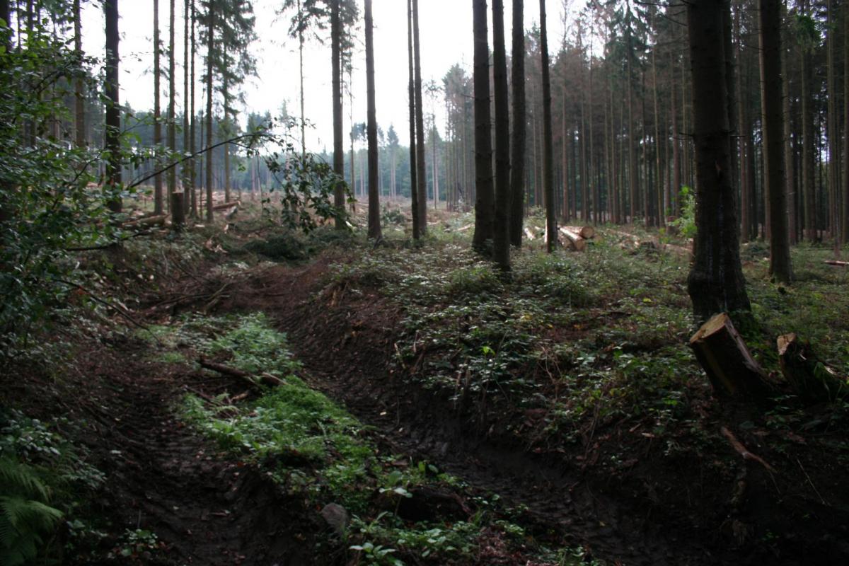 Grossflächiges abholzen der Fichtenbestände am Limespfad. Ende nicht in Sicht.....