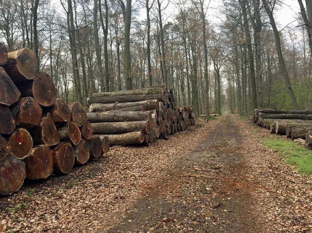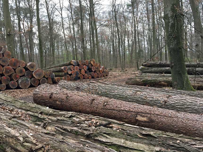 Das ganze Jahr über werden dort dicke Stämme an- und abgefahren. Das Waldschutzgebiet bzw. seine Tiere haben dort nie Ruhe.