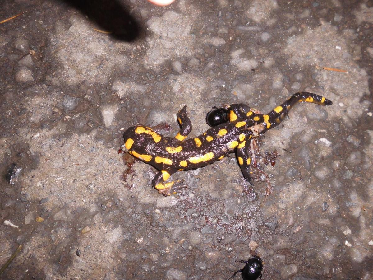 Seit etwa drei Jahren wird der ehemals (2013/2014) schöne Mischwald regelrecht ausgeräumt und ständig weiter durch die schweren Maschinen und die nahezu flächendeckende Befahrung verdichtet. Der hier noch heimische Feuersalamander dürfte diese Attacken nicht überleben.