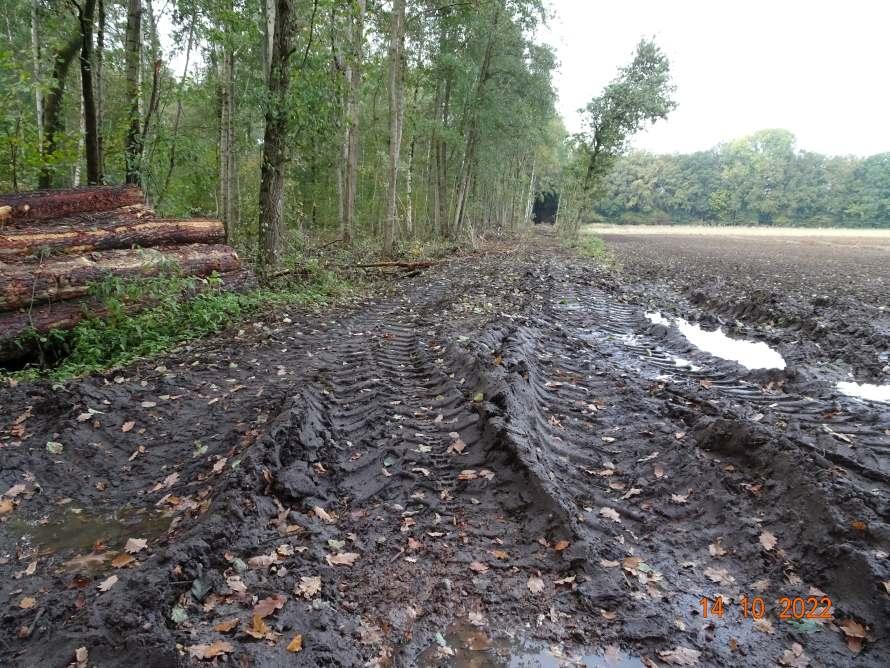Der Mischwald war ohnehin stark vorgeschädigt durch frühere Durchforstungen und die Immissionen aus der chemisch-industriellen Landwirtschaft. Wege waren vorher schon kaum benutzbar. Nun kommen neue Wegeschäden hinzu. Rückegassenabstände viel zu gering. Befahrungen auch kreuz und quer. Viel zu starke Auflichtungen.