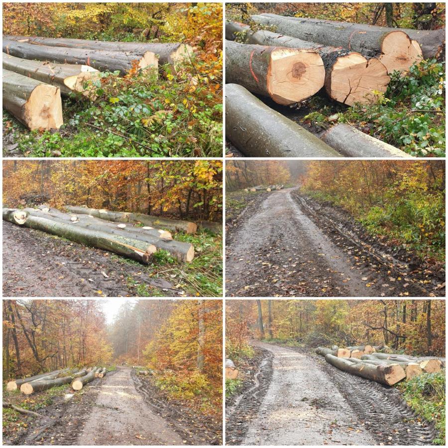 Fällung von Buchen inkl. Schäden durch Fällarbeiten u.a. am Waldboden, Bäumen, etc.