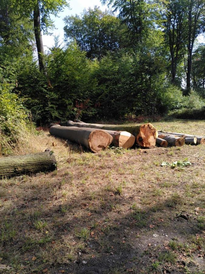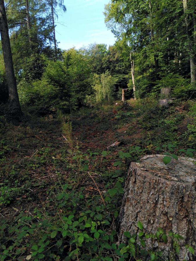 Nahezu alle etwas größeren Bäume wurden in vergangenen Jahren geerntet. Vielfach Kahlschläge und Wiederaufforstungen von Nadelbäumen in Reih und Glied. Der Wald wurde z.T. in einen altergleichen Wald verwandelt. Baumstümpfe weisen auf eine früher bessere Altermischung hin. Viel zu große Auflichtungen. Was bedeutet im Kreis Coesfeld Naturschutz in einem Waldgebiet?