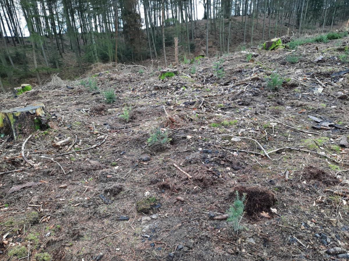 Großflächige Abholzung von Nadelholz und Aufforstung mit Douglasien