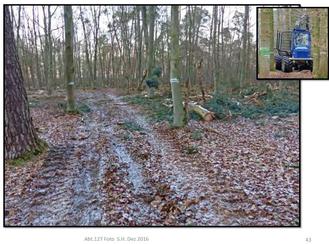 Es wurde zur nassesten, ungünstigsten Zeit dort mit schweren Maschinen gefahren. Im Januar z.B. war der Boden gefroren, aber es wurde im nassen Dezember alles kaputt gefahren und verdichtet.
