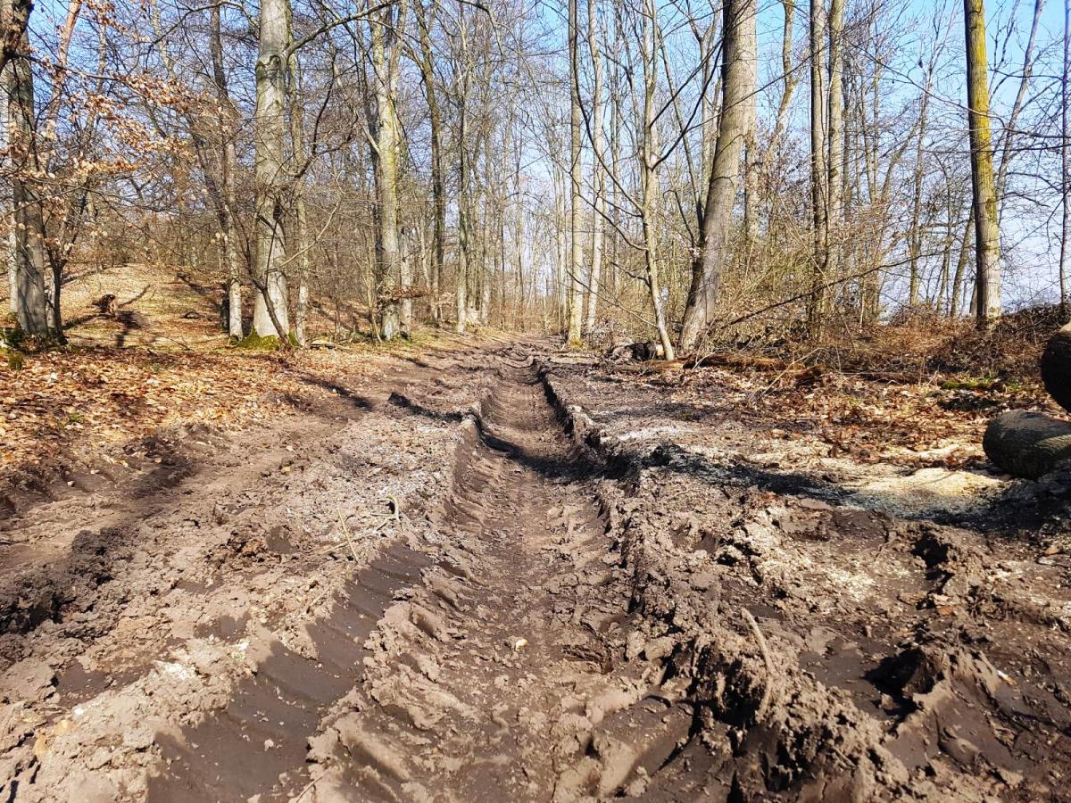 Der schönste, beliebteste Wanderweg wurde durch Baumfällarbeiten mit Forstmaschinen völlig zerstört. Weil die Fällungen wohl ausgerechnet bei nasser, ungünstigster Witterung stattfanden.