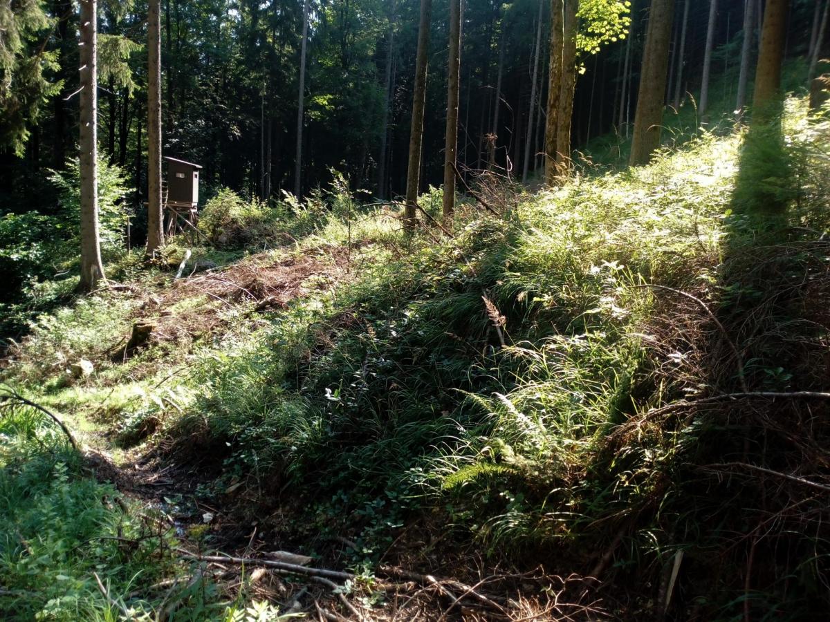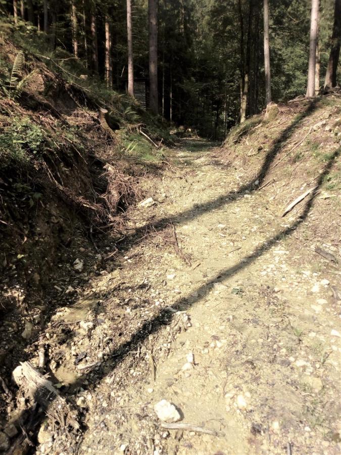 Zwischen Karlstein und Thumsee wurde in einem Steilhang, zum Zweck der Stammholz - Abfuhr ein Graben mit einer Breite von ca.