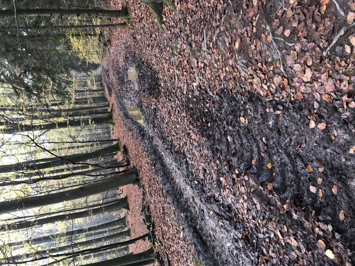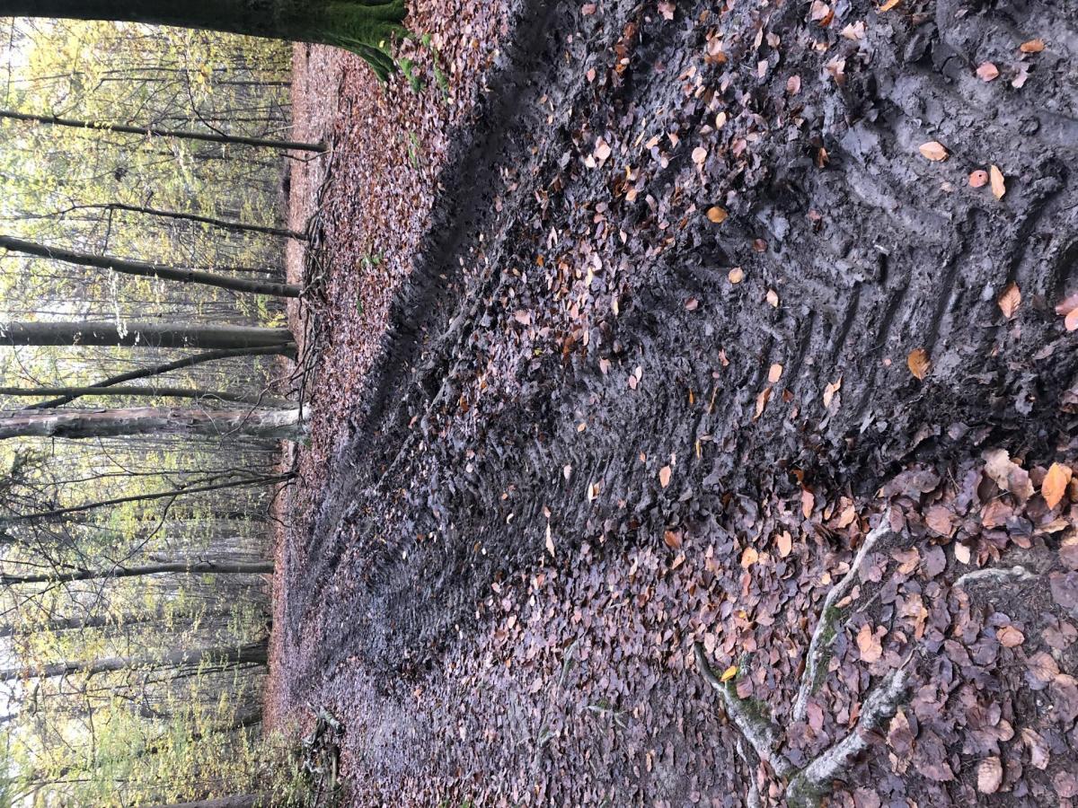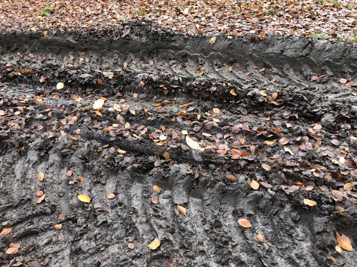 Tiefe Reifenspuren in Rückegasse im Wald bei Kelkheim
