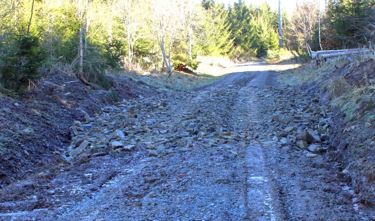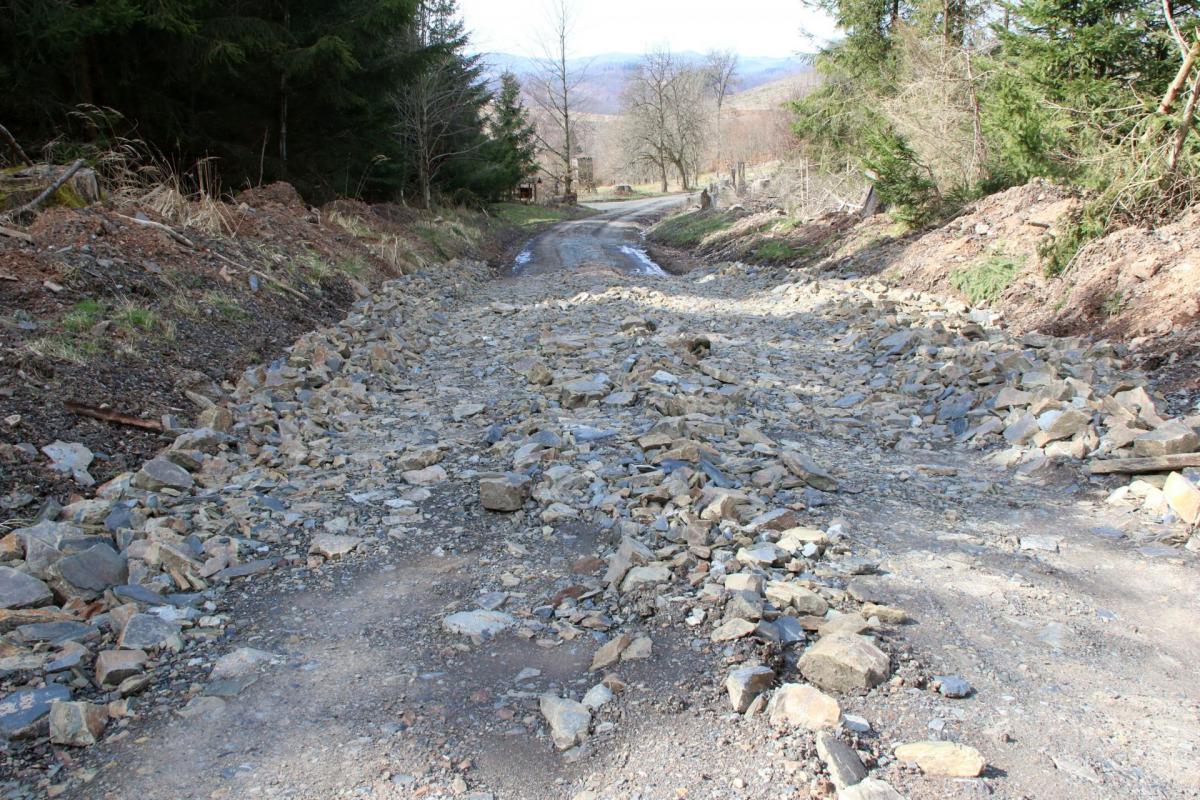 Der Wegeschaden entstand kurz nach dem Jahreswechsel 2022/2023 und wurde innerhalb einer Woche mit den in den Fotos sichtbaren großen Steinen wieder aufgefüllt.
