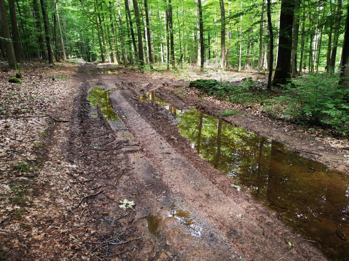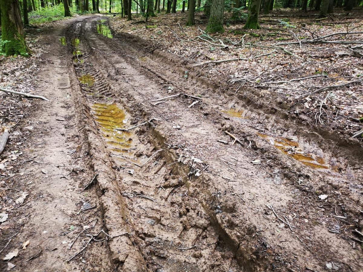 Auf einer Länge von ca. 500m starke Wegeschäden durch Holzvollernter.